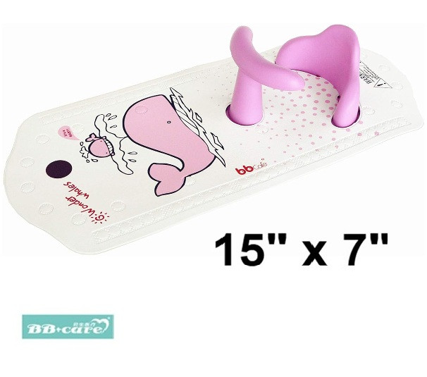 BBCARE NON-SLIP SAFETY BATH SEAT WITH EXTRA LONG BATH MAT & hot spot feature - 15" x 7" - blue whale