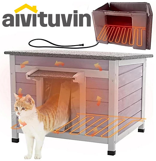 tepoal outdoor/indoor Waterproof heated pet cat house - 21.9" x 16.7" x 4.7" - grey (model: PL4050)