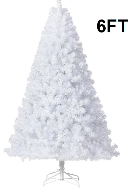 Pre-Lit Christmas Tree with Dual Color Lighting, Christmas Tree with Foldable Metal Leg -6ft - white