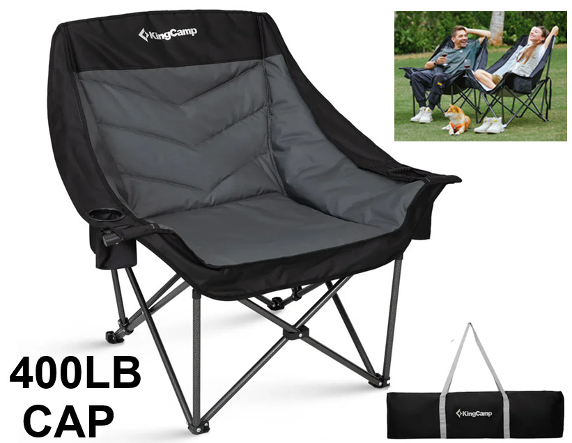 KingCamp Canna C10 PLUS Oversized Padded Camping Chair - 400LB Capacity - Black/Grey (Model: KC2508)