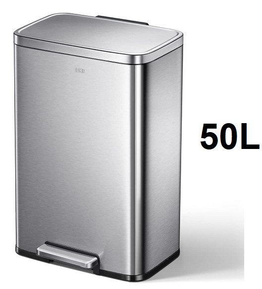 EKO Madison STEP Brushed Stainless Large GARBAGE CAN - FINGER PRINT RESISTANT - 50L - MATTE METALLIC