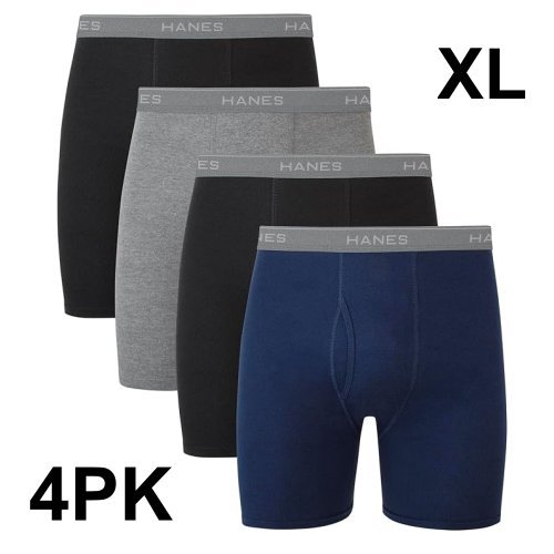 4PK MEN'S HANES SOFT AND BREATHABLE TAGLESS BOXER BRIEFS - x-Large - BLACK/GREY/NAVY (STYLE: m7349f)
