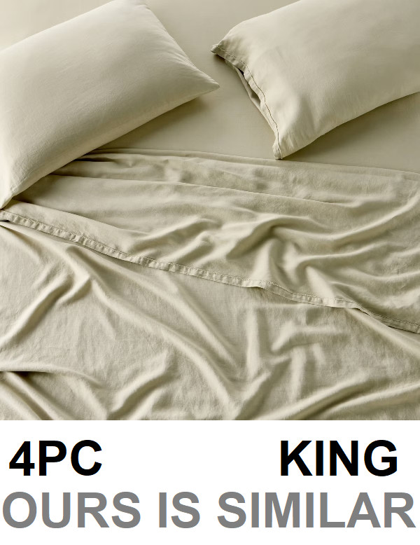4pc casaluna linen sheet set - king size - flat sheet, fitted sheet, and 2 pillowcases - olive green