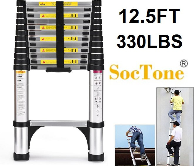 soctone aluminum extension folding 13 step ladder - 16.4ft - 330lbs - silver/black - (Model: ZL0113)