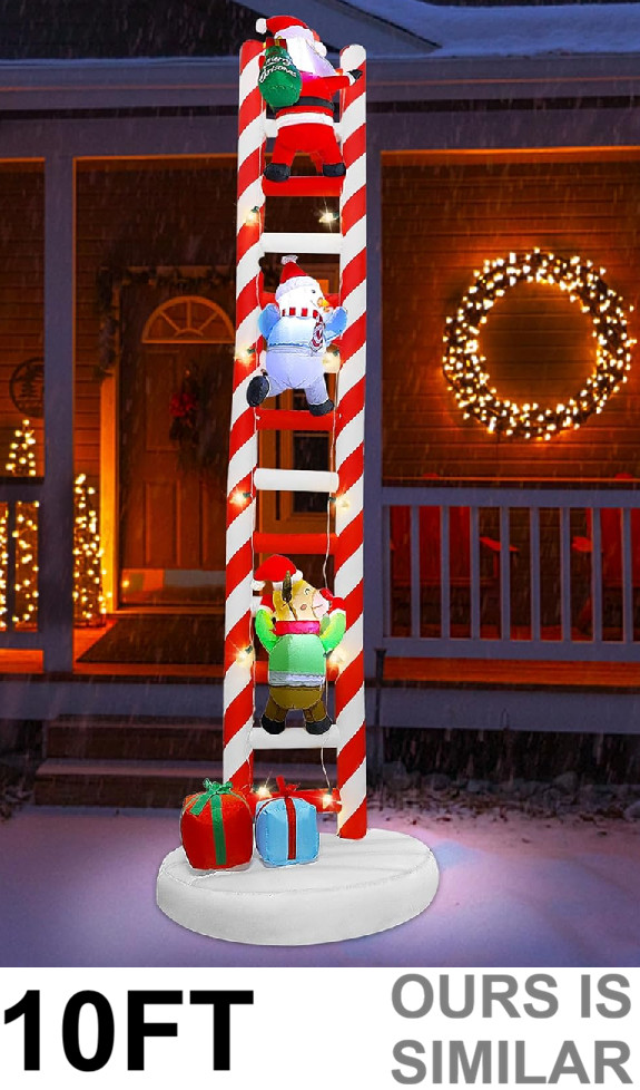 Joliyoou Giant Lighted Ladder Blowup Inflatable Christmas Decoration - 10FT - Reindeer/Snowman/Santa