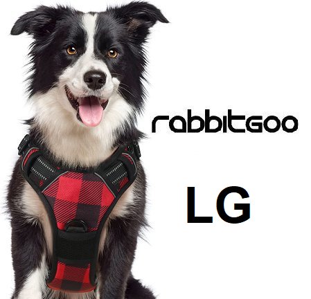 RABBITGOO NO-PULL PADDED ADJUSTABLE DOG WALKING HARNESS WITH 2 LEASH CLIPS - large - RED/BLACK PLAID