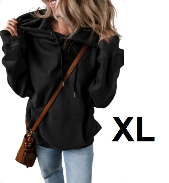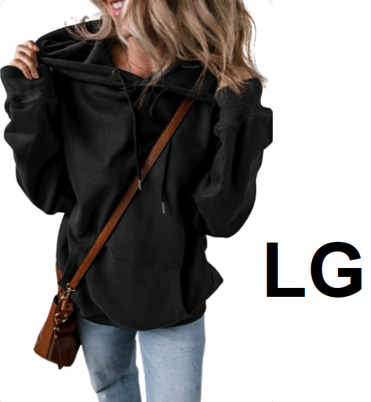 women's fleece lined oversized hoodie with kangaroo pocket - extra large - black (style: lc25316608)