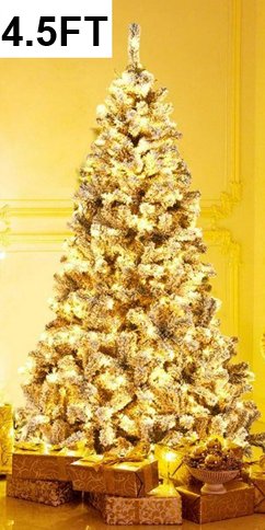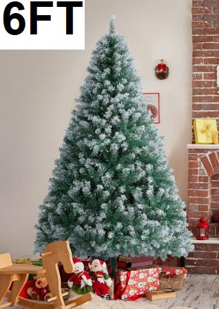 Pre-lit Snow flocked Christmas tree with hinged branches and LED lights - 6ft - (Model: CM25032US-M)