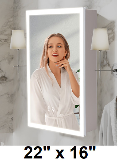 vanrste wall mounted Recessed Lighted Medicine Cabinet with Mirror and led light - 22" x 16" - white