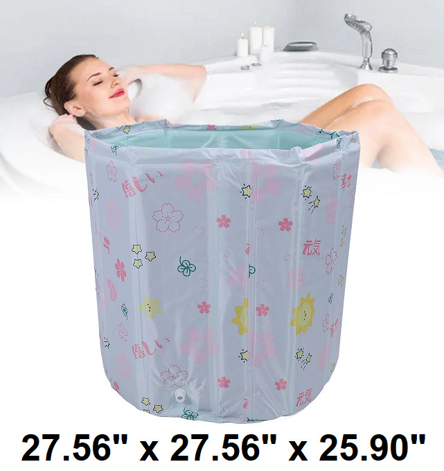 adult Foldable Portable Soaking Bathtub - 27.56" x 27.56" x 25.90" - beige/floral - (MODEL: my7180)