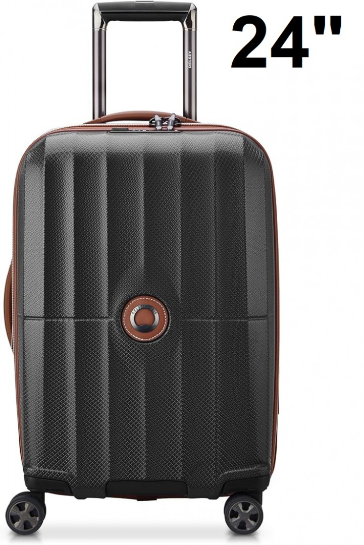 delsey paris st. tropez Hardside Expandable Luggage with Spinner Wheels - 24" Checked Medium - BLACK