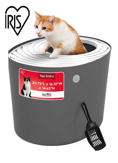 IRIS USA Oval Cat Litter Box with Catching Lid - medium - 17" x 14" - black & grey (model: PUNT-530)