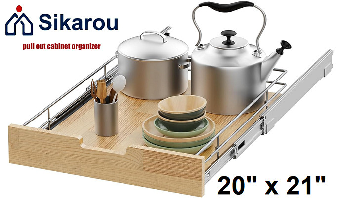 sikarou heavy duty sliding pull-out metel wire/wood cabinet organizer - 20" x 21" (model: bw421209l)