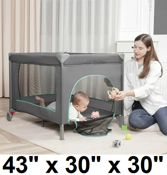 ciesmsi pack and play portable crib with carrying bag - 43" x 30" x 30" - dark grey (model: hy-8036)