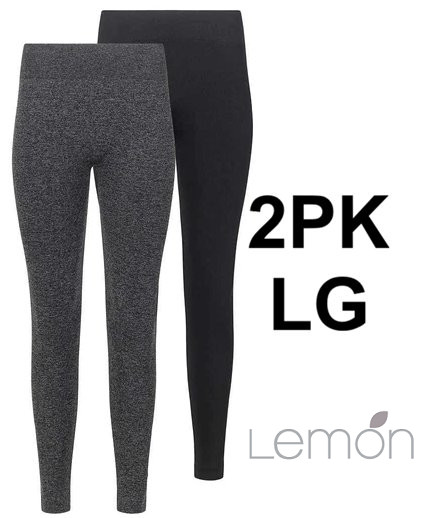 2PK lemon fleece-lined legging improved waistband and seamless - LARGE - black/Grey (style: 6854003)