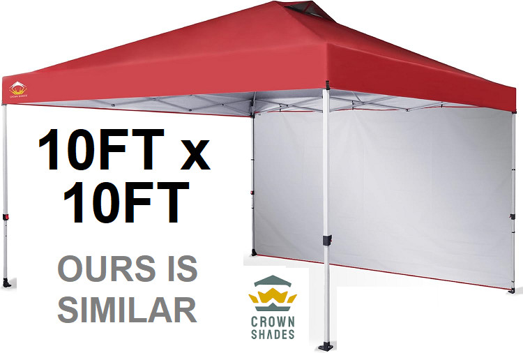 crown shades pop up canopy tent with one side panel - 10ft x 10ft - red/white (MODEL: cs-rm100h-sa1)