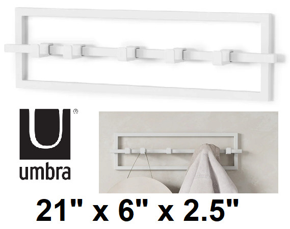 umbra cubiko 5 - hook sliding wall mounted coat hooks - 21" x 6" x 2.5" - white (model: 1016881-660)
