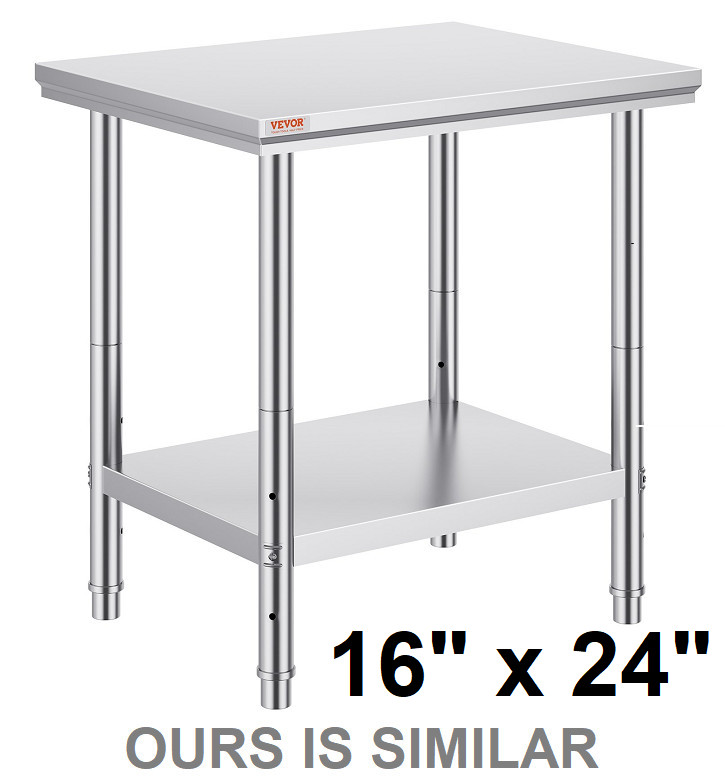 heavy duty 2 tier multipurpose adjustable stainless steel work prep table - 16" x 24" x 34" - silver
