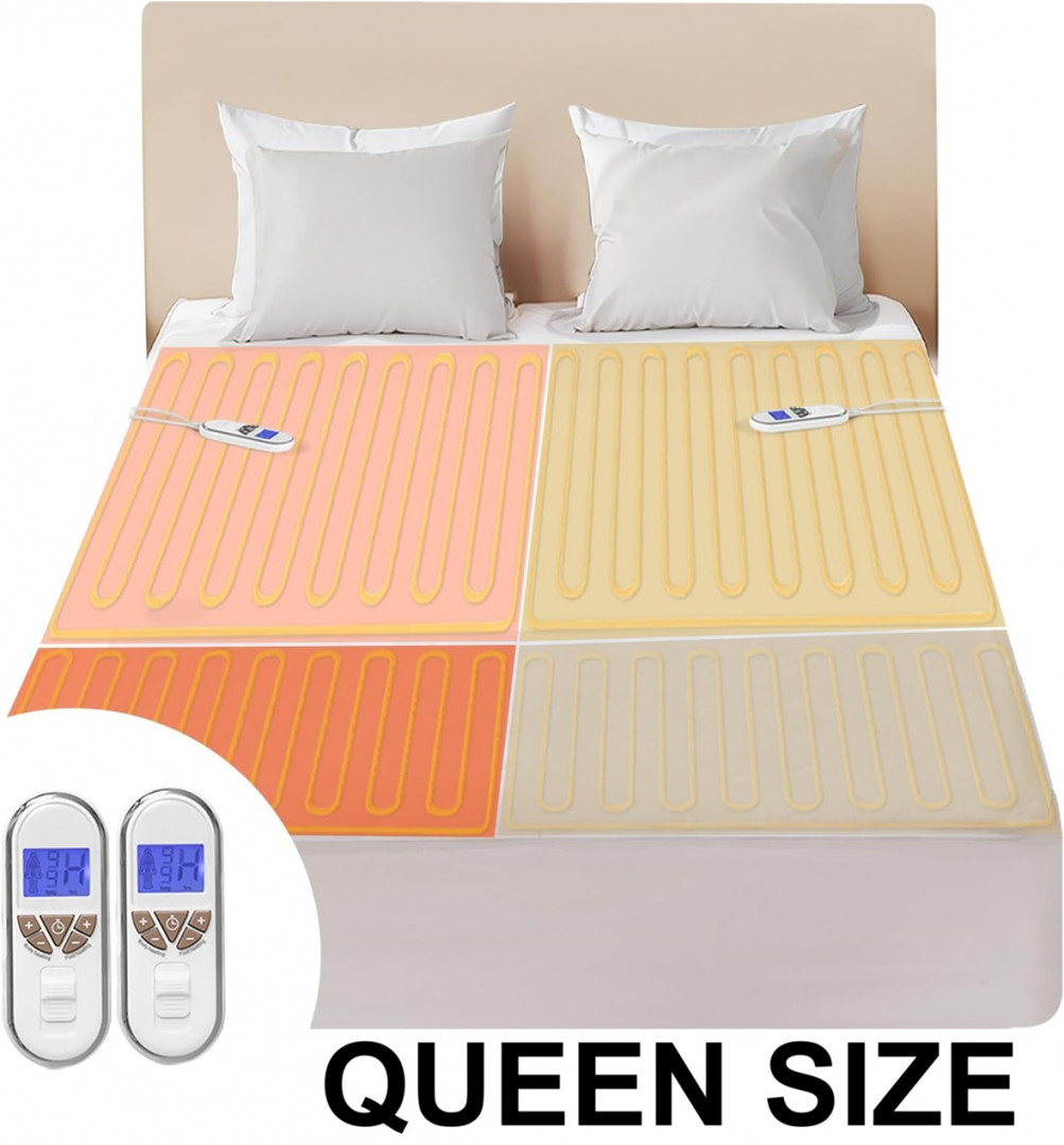 bwarm premium multi-zone electric heated mattress pad - queen (60" x 80") - (model: TT-80X39-1X-032)