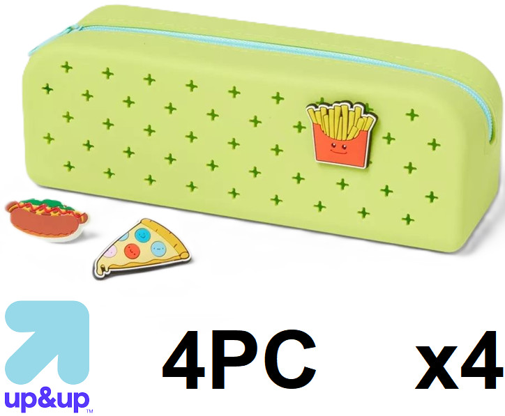 4 (4pc) up&up food charm silicone zippered pencil case pouch - french fries / pizza / hotdog - green