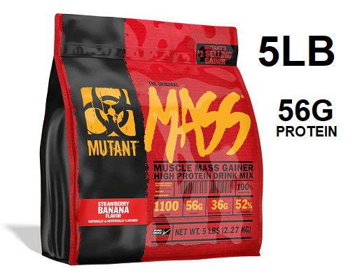 THE ORIGINAL MUTANT MASS MUSCLE GAINER PROTEIN POWDER, 1100 CALORIES 56G PROTEIN - STRAWBERRY BANANA