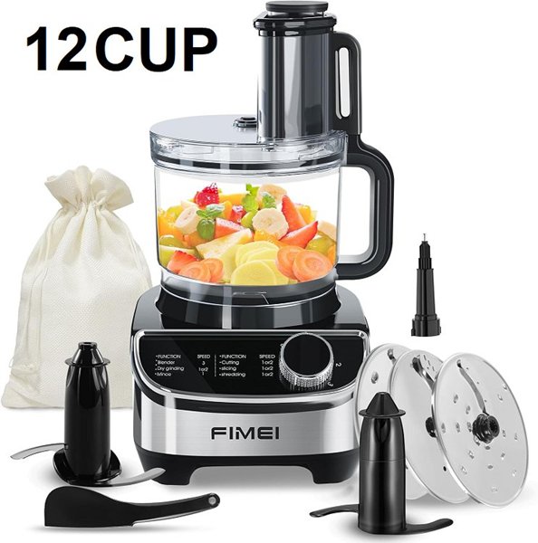 fimei food processor with accessories - 12 cup - 600w - 120v - black/silver (model: hgm-411)