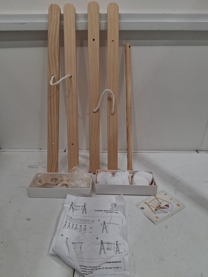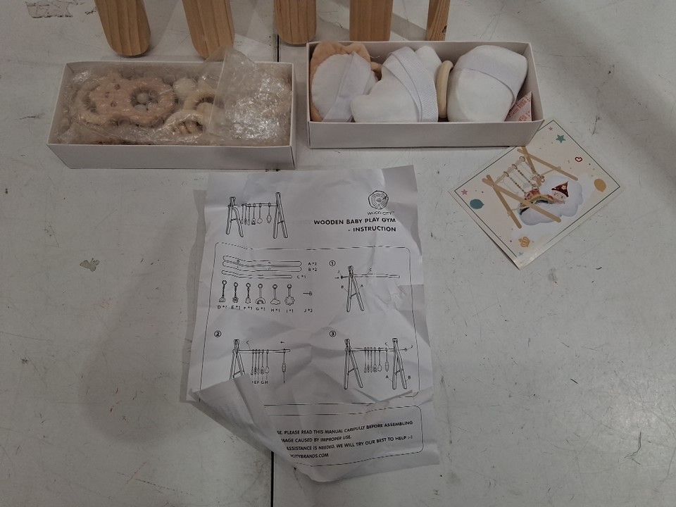 newborn wood city baby play gym with 6 Hanging Sensory Toys for Infants Activity - 23'' X 19.7'' X 18.5'' - natural wood (model: 1221150000)
