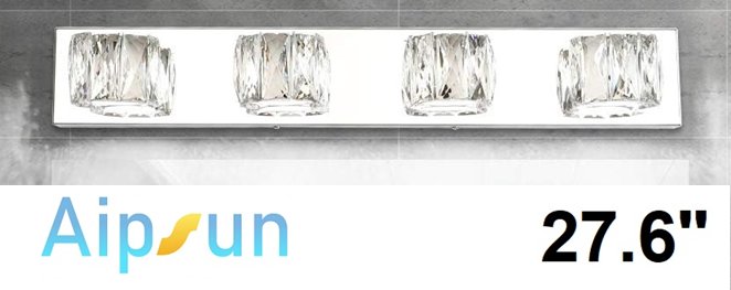 Aipsun Crystal Over Mirror Modern Vanity Lights for Bathroom - 4 Lights - 6000K(White light) - 24W - 27.6" - chrome/clear (model:‎ Ca-8271-4T)