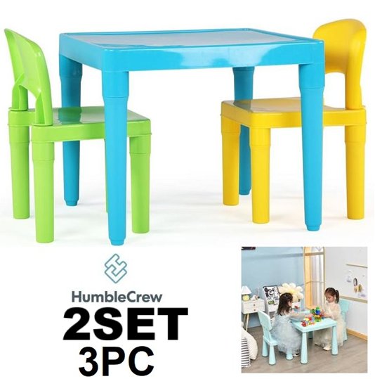 2 SET 3pc Kids Humble 2 Crew Tot Tutors Table and 2+2 Chairs Set - Aqua/Green&Yellow - (model:TC800)