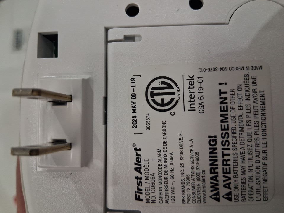 FIRST ALERT PLUG IN CARBON MONOXIDE ALARM WITH BACK UP 9V BATTERY (1039732)
