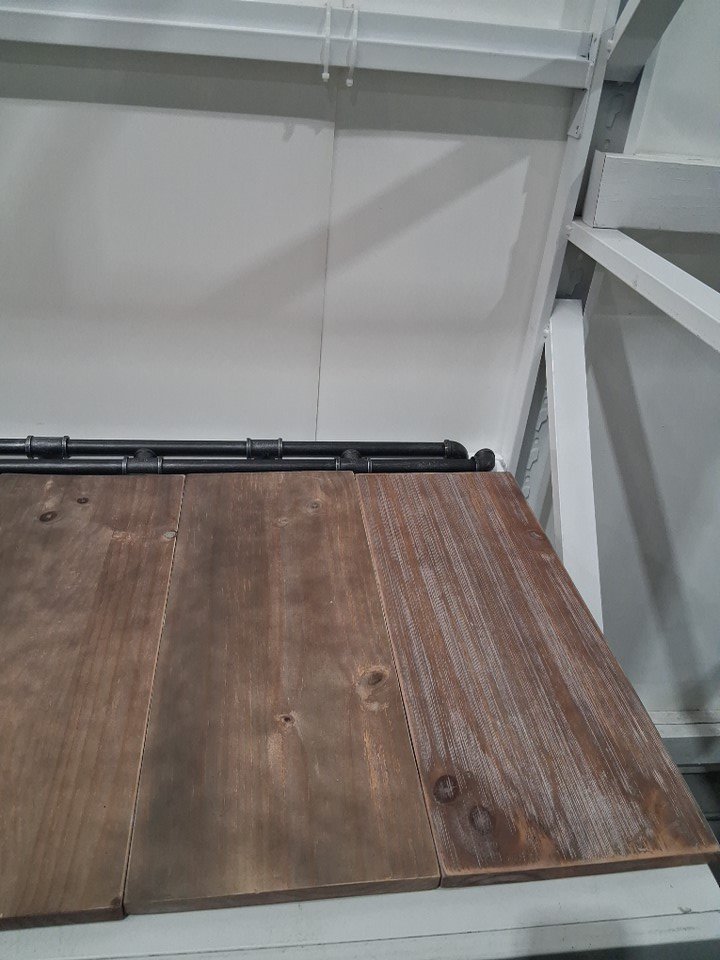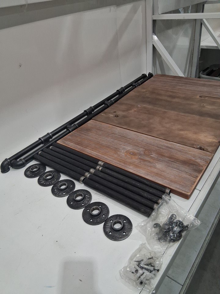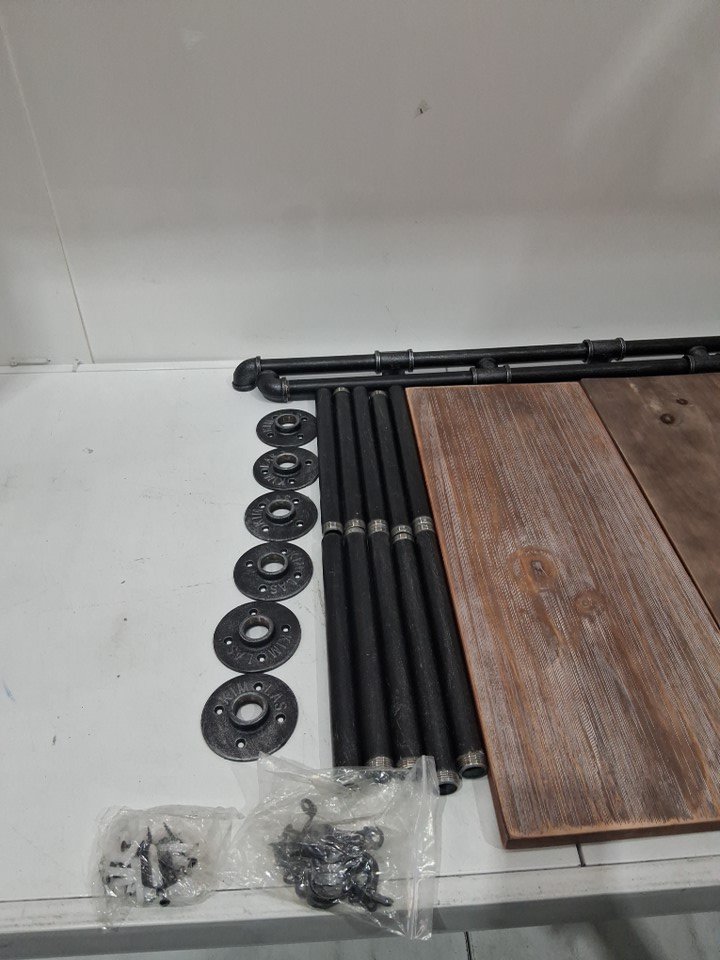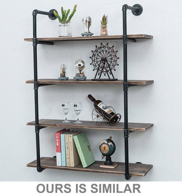 INDUSTRIAL 4-TIERS WALL MOUNT PIPE SHELVES - 46" - RUSTIC WOOD