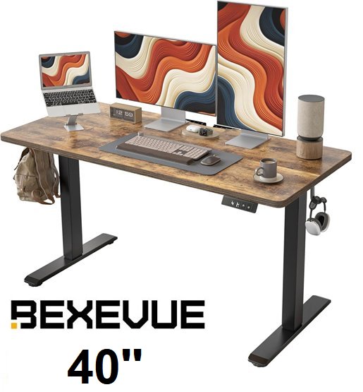 BEXEVUE Electric Height Adjustable Desk - 40" X 24" X 28" TO 47" - rustic brown(MODEL: 4024G)