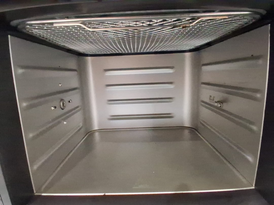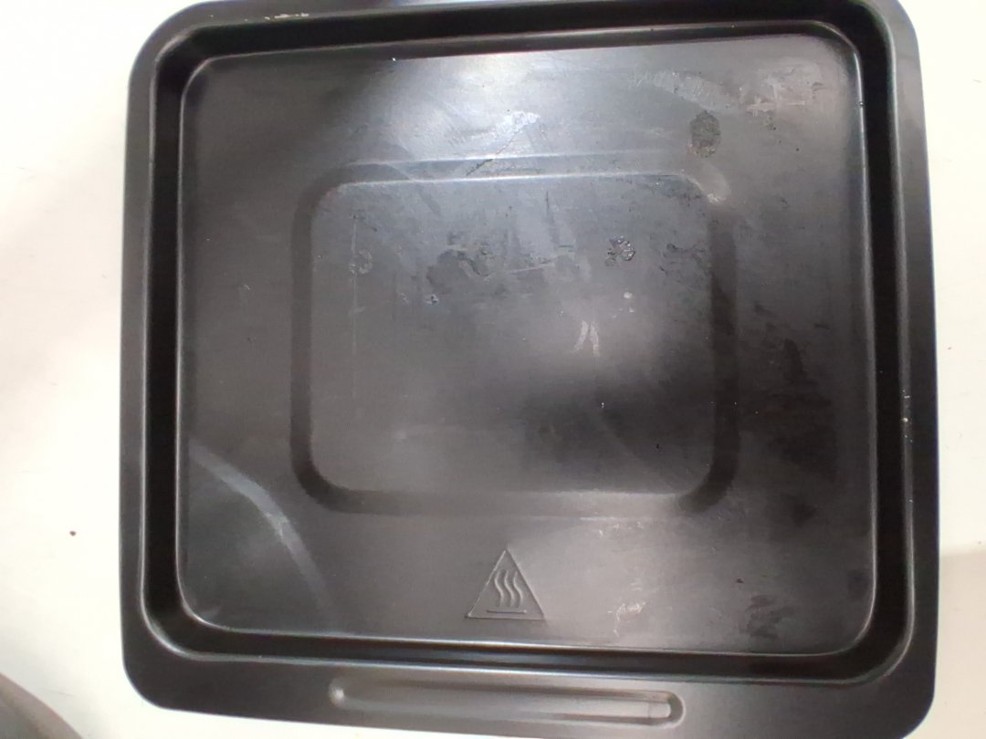 Item tested for power. Item has food residue and scratches from previous use. There is also a crack on the back as well. (See photos)