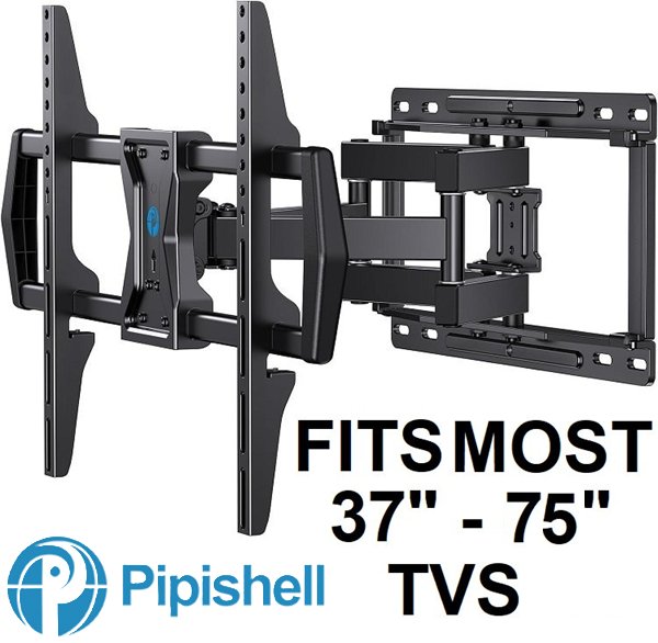 Pipishell Full Motion TV Wall Mount - 100LBS cap - 37" - 75" - black (MODEL: pilf6)