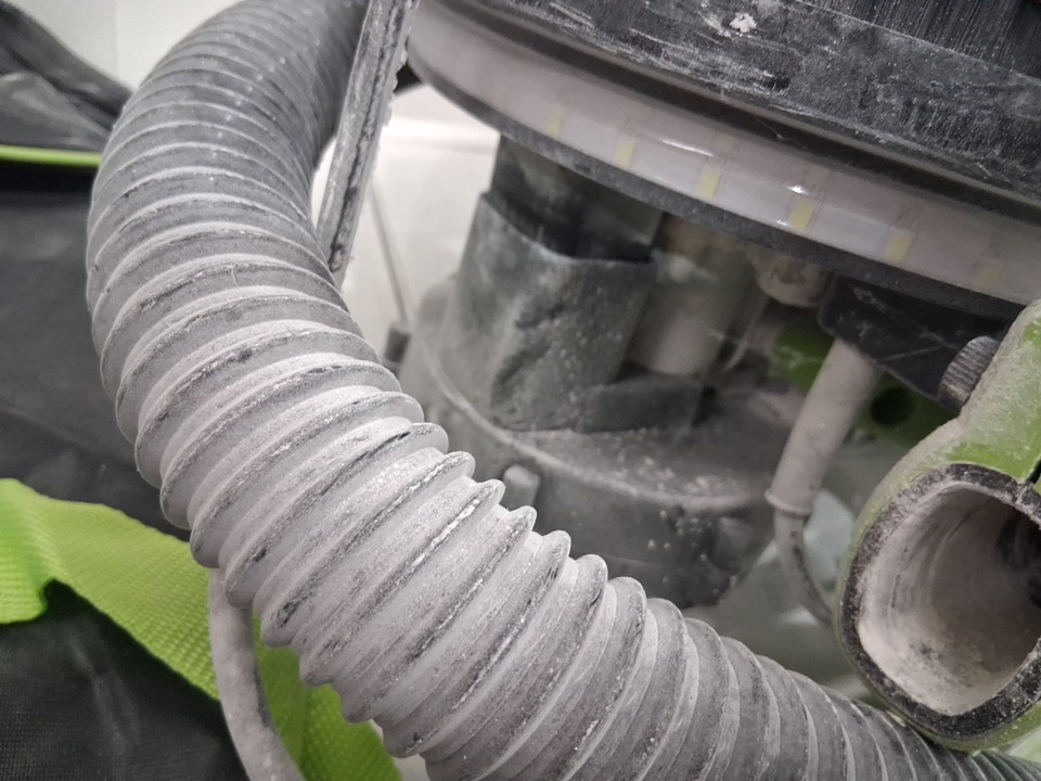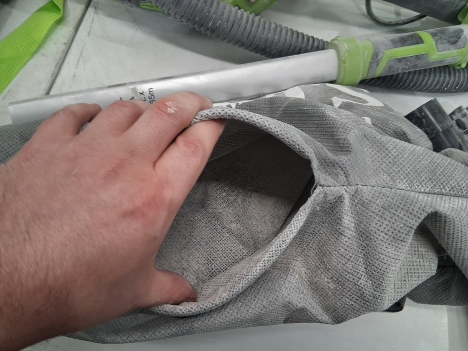 Product has seen heavy use and is covered in drywall dust vacuum bag is very dusty. See photos for details. Tested for power.