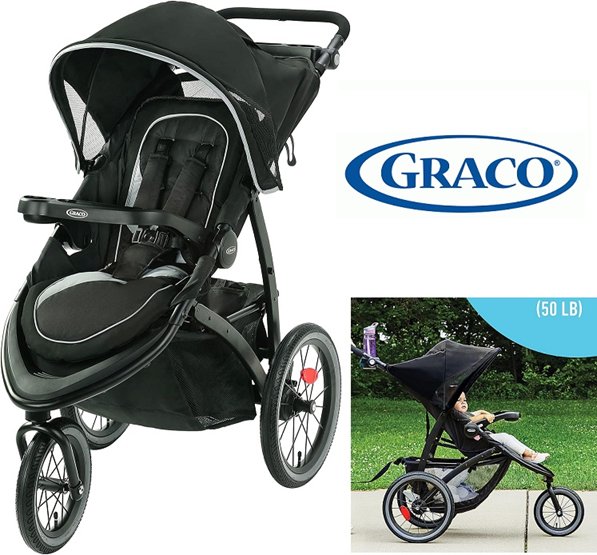 Graco FastAction Jogger LX Travel System with One-Hand Fold Jogging Stroller with Air-Filled Tires, Multi-Position Recline, Adjustable Handle, Large Storage Basket - Black / Grey (MODEL: 2115426)