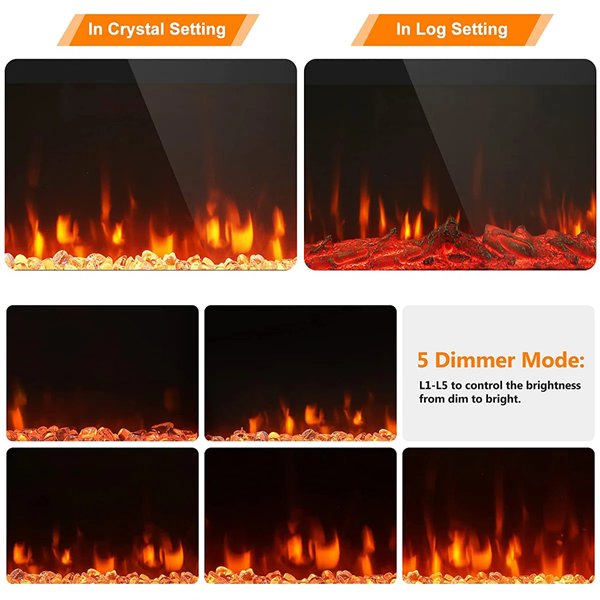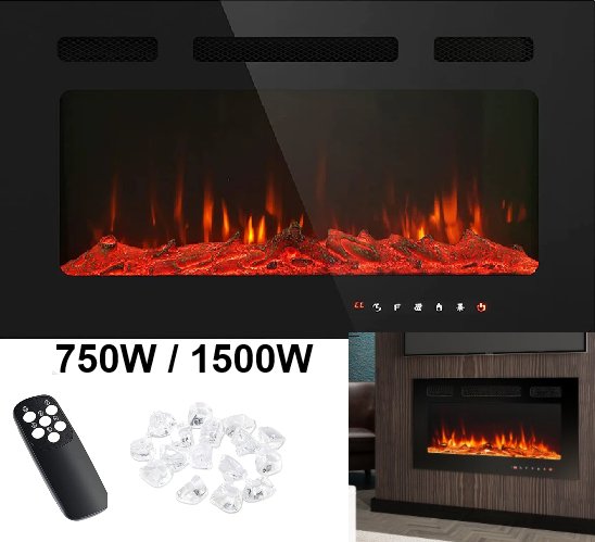 Anik Fireplace insert With Remote & Touch Control, Timer Adjustable Flame Color-750W/1500W -Black