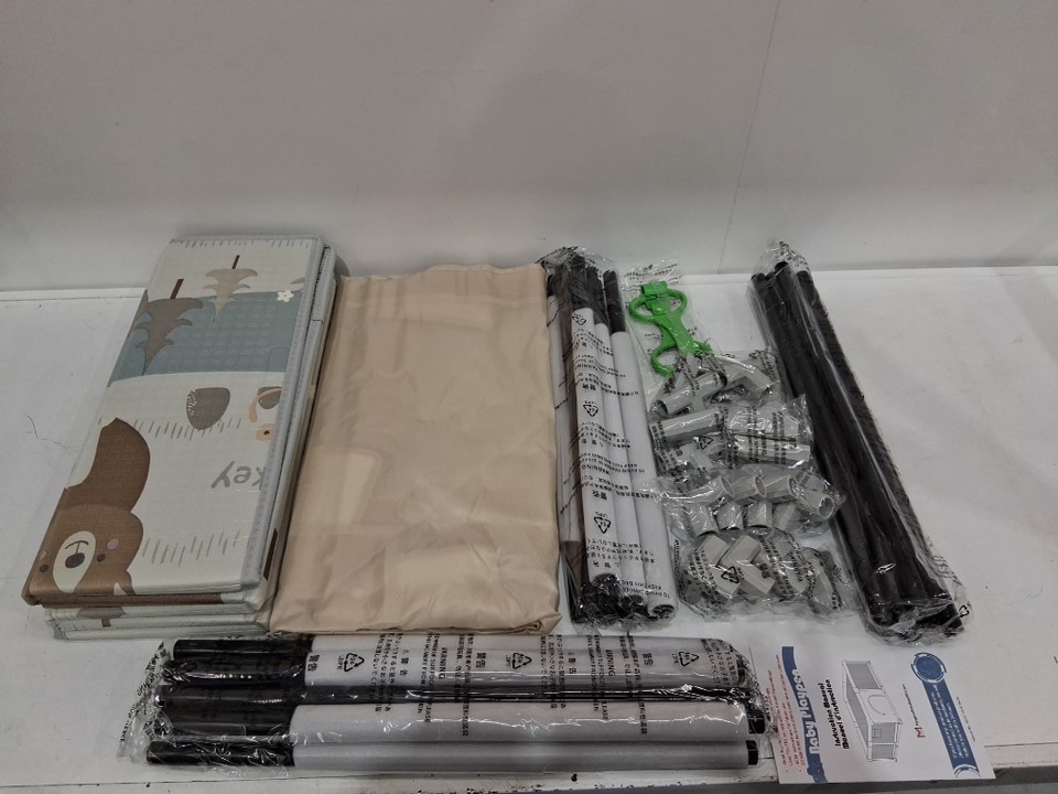 baby playpen suite with reversable mat - 47" x 47" - Beige/print