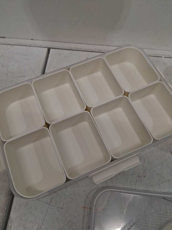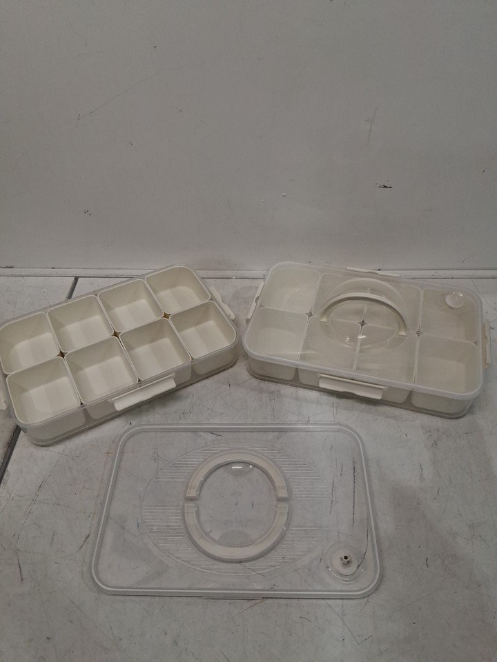2pk Snackle Box 8 Compartments Portable Divided Serving Tray with Lid - 11.8" x 8.8" x 2.6" - beige/transparent