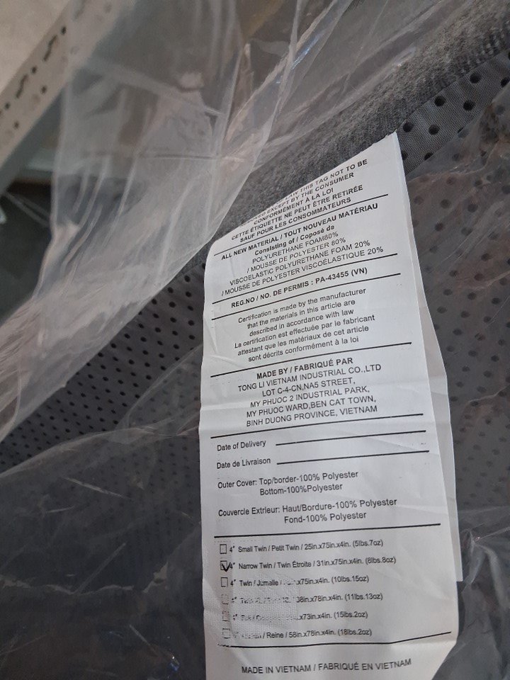 MEMORY FOAM TRI-FOLD MATTRESS WITH REMOVABLE WASHABLE COVER - 4" Narrow TWIN - WHITE/GREY (MODEL: TLSZD)