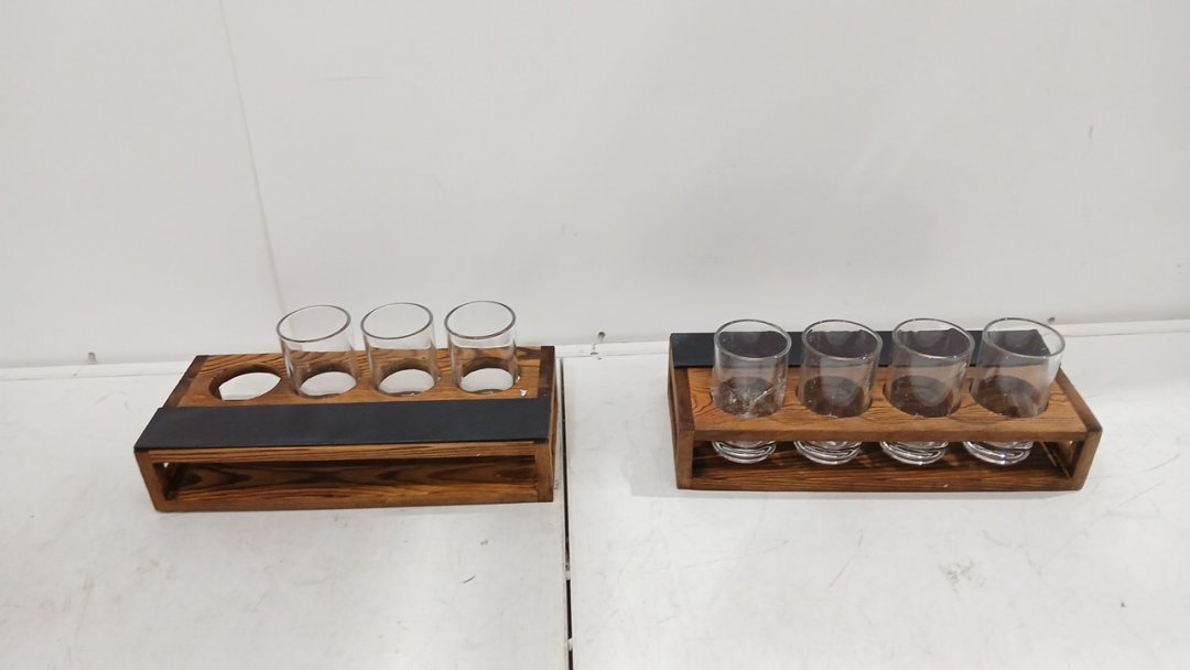 please note one of the serving trays is missing one glass as well as the other serving tray has one glass that has tape residue on it from shipping without any packaging