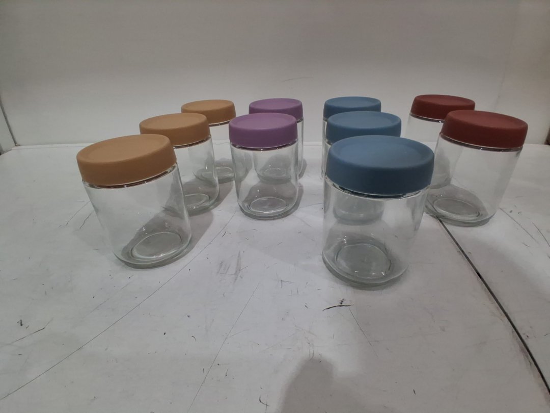 10pk keywing rubber seal air tight twist top glass jars/storage containers freezer/dishwasher/oven/microwave safe - 16oz - blue/yellow/red/purple - (model: ‎OOC-16OZ--CLR-12P)