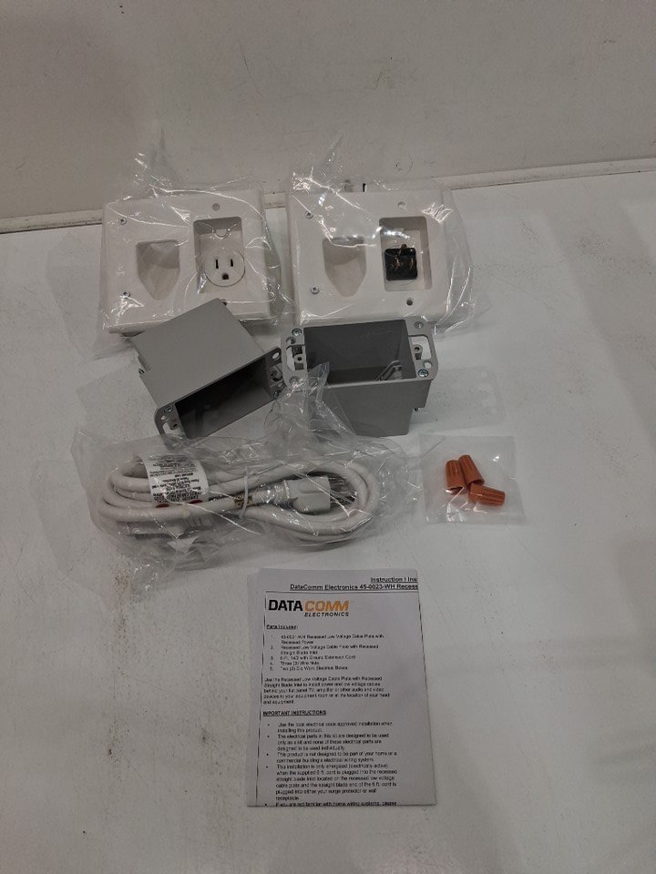 DATA COMM Electronics Recessed Pro-Power Kit with Straight Blade Inlet - 125V - 6FT cord - white (Model: 45-0023-WH)