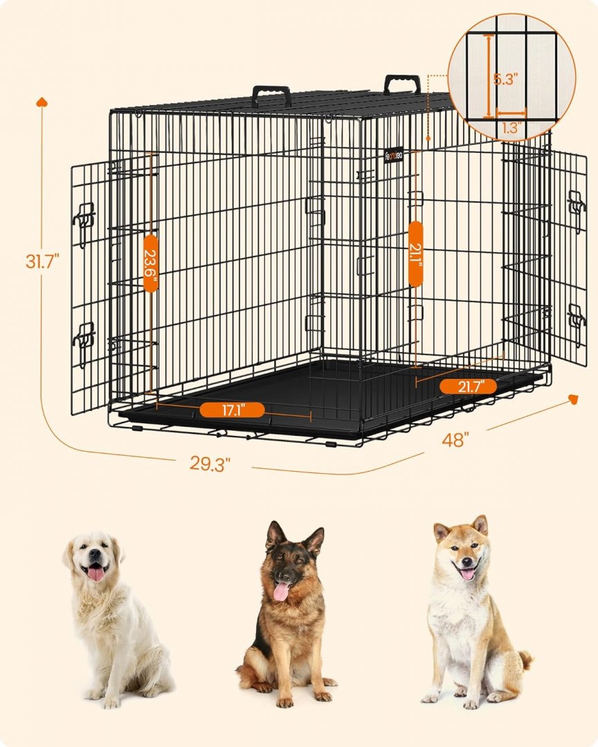 FEANDREA DOG CAGE/PET CRATE With 2 DOORS FOR EASY ENTRY - XXL - 48" x 29.3" x 31.7" - BLACK - (MODEL: PPD48H)