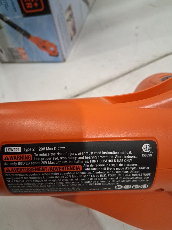 black+decker cordless sweeper blower with powerboost - 20v max- 130mph-100cfm - orange/black (model:lsw321)