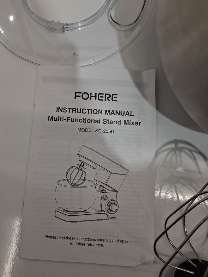 fohere 5.4L stand mixer with accessories- 6 speed, 600W -silver (model: sc-205U)
