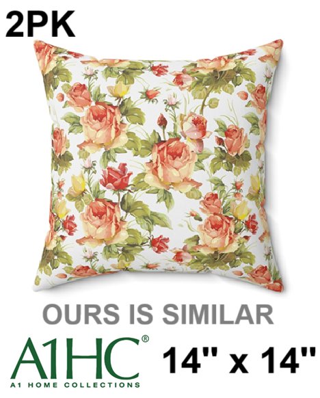 2PK A1 Home Collection vintage throw pillow - 14'' x 14'' - Orange Floral