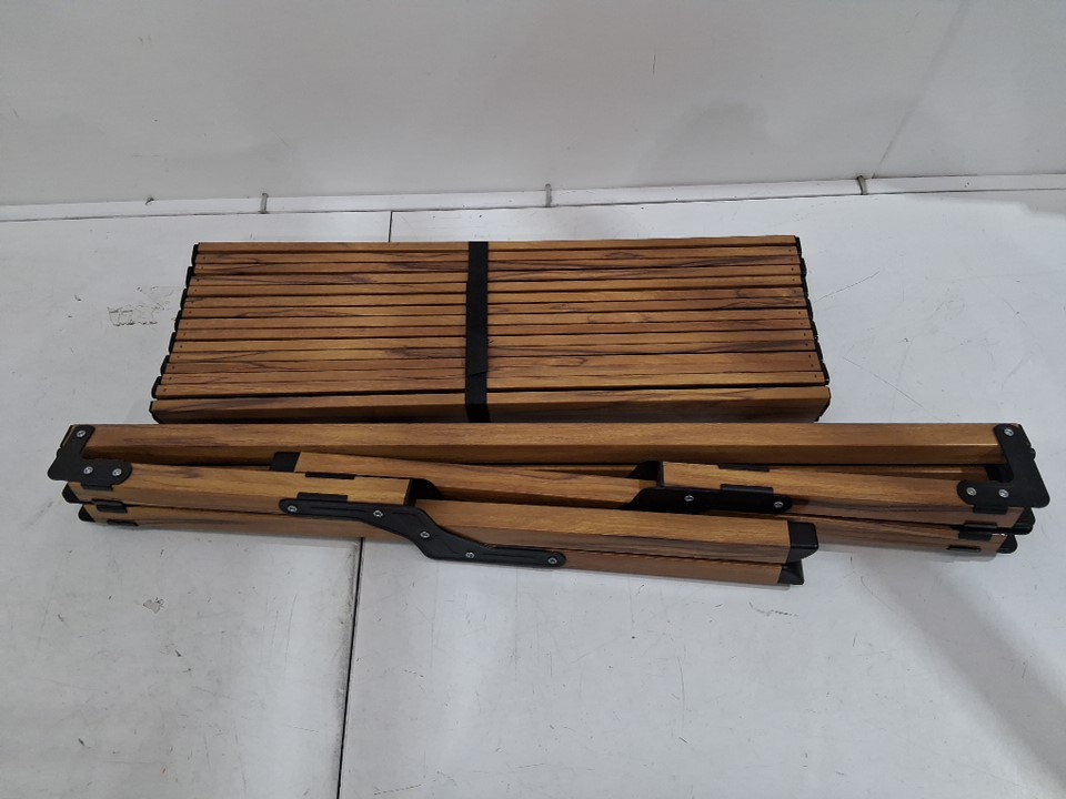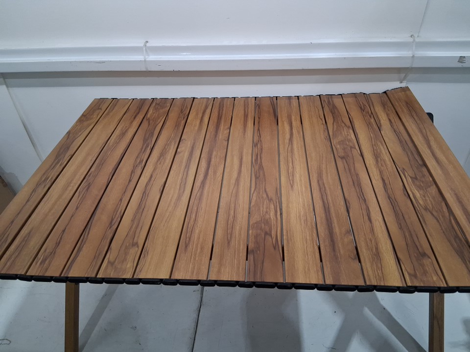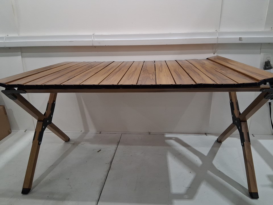PORTABLE FOLDING WOODEN EGG ROLL CAMPING TABLE - 23.5" x 33" - brown