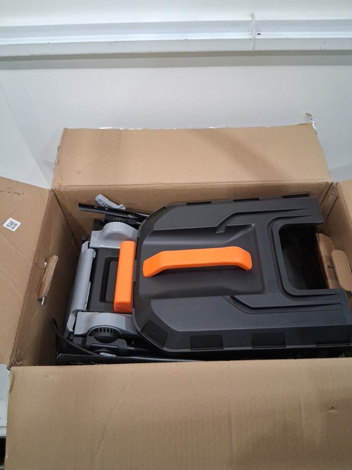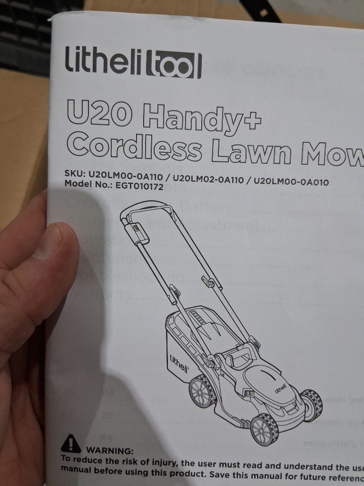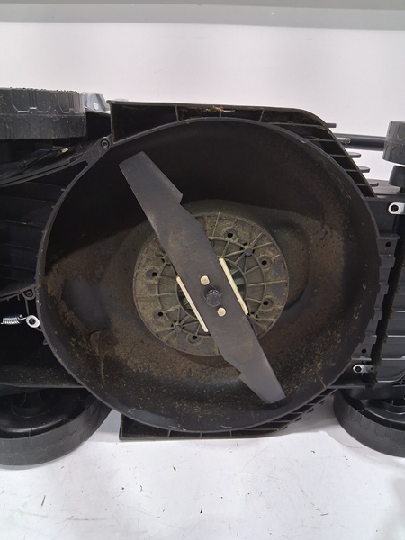 Product has a lot of grass that is present inside the packing with the product Blades and underneath the product are caked in grass residue. Battery was tested for power but due to safety product as a whole was not tested.