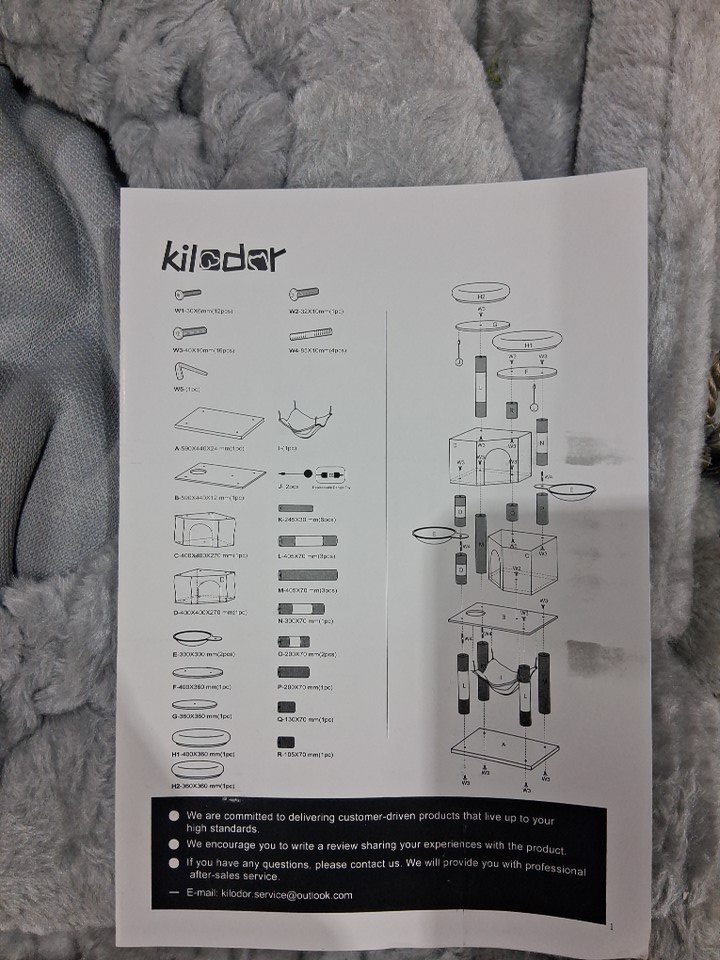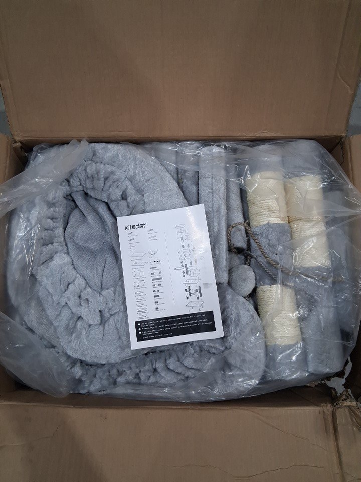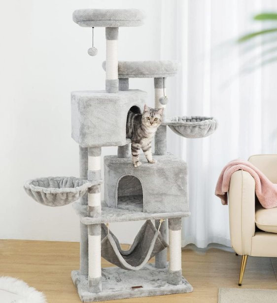 KILODOR MULTI-TIER 68" TALL CAT PLAY ACTIVITY TOWER WITH PERCHES, HAMMOCK, TOYS & MORE - LIGHT GREY (MODEL: A21MT0009)